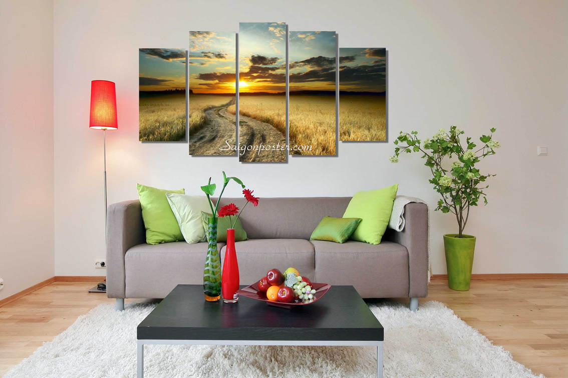 Bộ Tranh Cánh Đồng Bất Tận đem đến cảm giác bình yên lạ lùng của buổi chiều nắng vàng tắt. Đặt trong không gian phòng khách gần cửa sổ là nơi hợp lí để thỏa sức thư giãn.