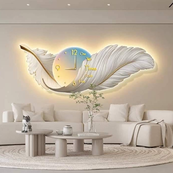 Tranh Đồng Hồ Đèn Led Lông Vũ - LD01