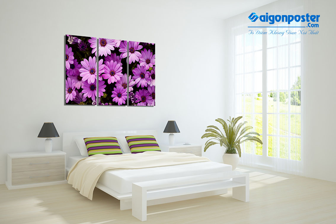 Tranh hoa cúc tím thích hợp trang trí không gian phòng ngủ