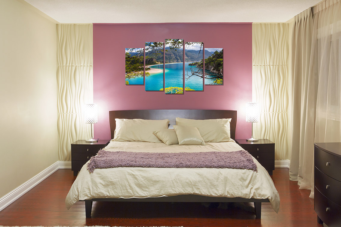 Bộ tranh thiên nhiên trong sáng đặt tại phòng khách hay phòng ngủ sẽ xua tan đi cái nhìn eo hẹp, đơn điệu của bức tường mà thay vào đó là không gian xanh mát nhẹ nhàng hơn.